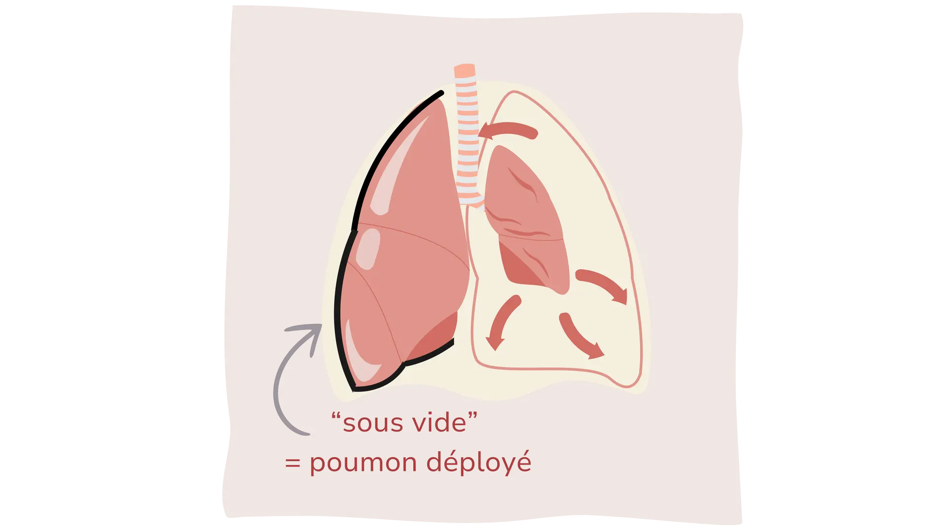 On peut le visualiser comme un ballon de baudruche dégonflé, dont la membrane serait délicatement «collée» à la paroi thoracique, l’empêchant de s’effondrer.